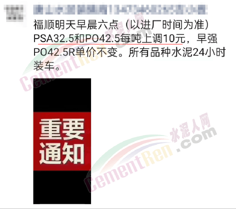 四川綿竹進(jìn)鑫化建有限責(zé)任公司通知稱從2022年3月3日凌晨4時(shí)起針對(duì)德陽、綿陽區(qū)域,“南綿”牌各品種袋裝水泥單價(jià)在原基礎(chǔ)上上調(diào)30元/噸。