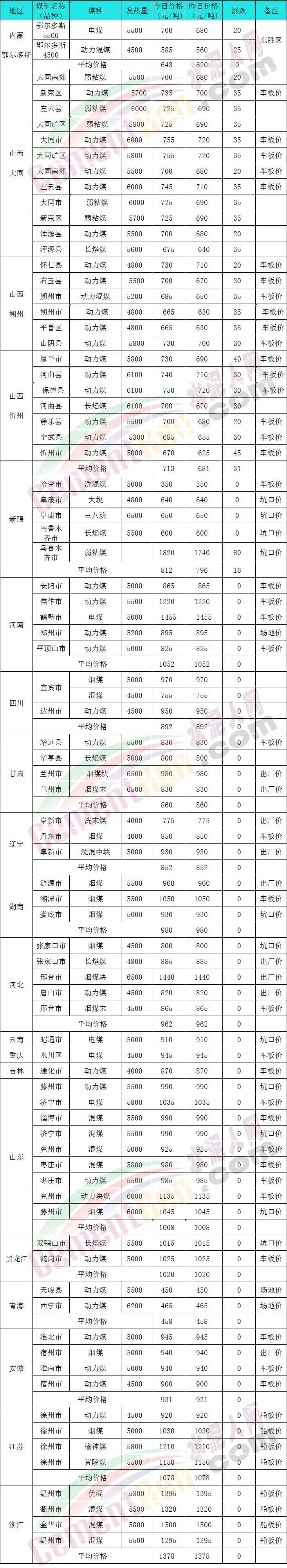 全國(guó)煤炭地區(qū)價(jià)格一覽