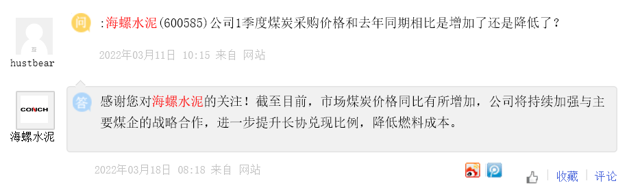 煤炭采購(gòu)方面,海螺水泥表示將持續(xù)加強(qiáng)與主要煤企的戰(zhàn)略合作,進(jìn)一步提升長(zhǎng)協(xié)兌現(xiàn)比例,降低燃料成本。