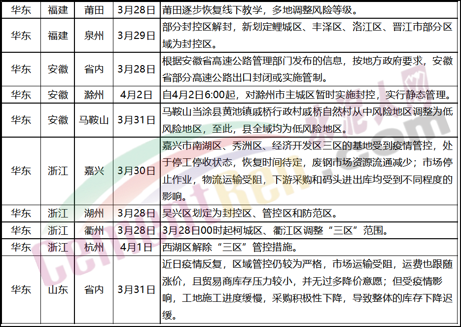 江蘇昆山4月2日零時(shí)至4月6日24時(shí)昆山境內(nèi)所有碼頭停止作業(yè)航道實(shí)施嚴(yán)格通航管控;江蘇宿遷4月1日5時(shí)至4月6日5時(shí),在中心城區(qū)實(shí)施靜態(tài)管理,停止一切非必要流動(dòng)和活動(dòng);安徽滁州自4月2日6:00起,對(duì)滁州市主城區(qū)暫時(shí)實(shí)施封控,實(shí)行靜態(tài)管理。