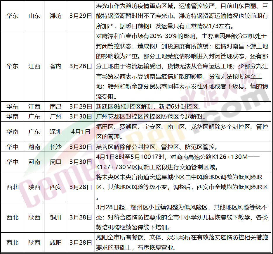 這輪疫情對(duì)水泥、砂石、混凝土等建材市場(chǎng)供需、物流影響較大。作為水泥消費(fèi)的核心市場(chǎng),長(zhǎng)三角區(qū)域市場(chǎng)受疫情影響幾乎處于“停擺”狀態(tài)。多城市地方政府對(duì)于貨車(chē)的流通采取了愈加嚴(yán)格的管控態(tài)勢(shì),且管控政策不斷變化,相應(yīng)的物流受到的影響也不斷增加。