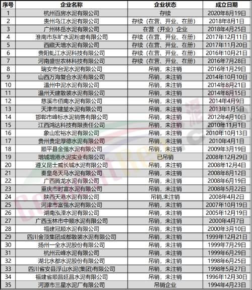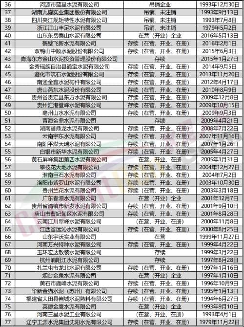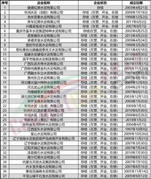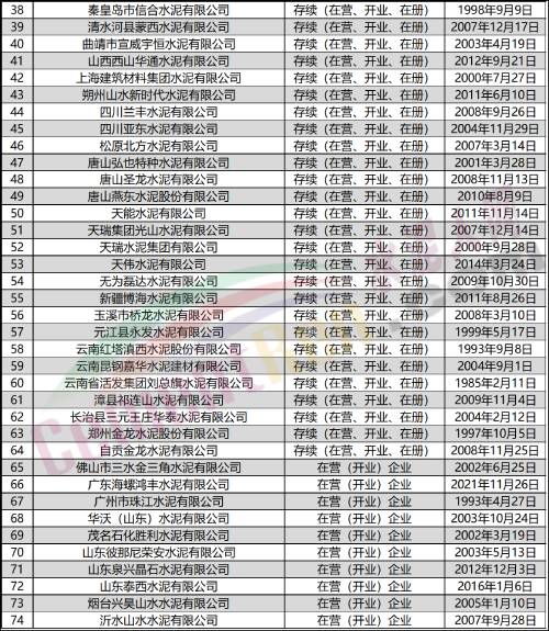 (部分水泥企業(yè))