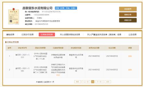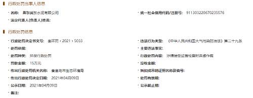 昌黎冀東水泥有限公司因涉嫌不正常運行大氣污染防治設(shè)施通過逃避監(jiān)管的方式排放大氣污染物,涉嫌接受監(jiān)督檢查時弄虛作假,在2021年4月9日被秦皇島市生態(tài)環(huán)境局處罰。