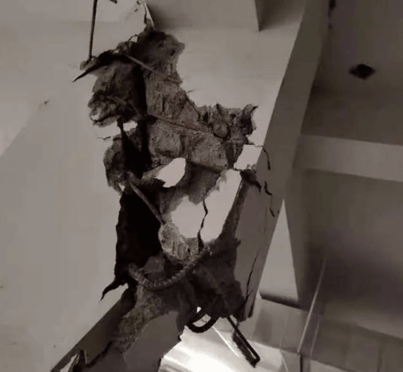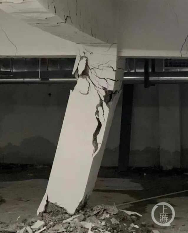 ▲除了立柱,地下室的橫梁也出現(xiàn)了嚴(yán)重的斷裂。圖片來源/受訪者供圖