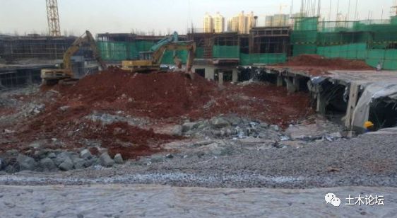 從中駿雍景灣公布的情況說明,此事故發(fā)生的時期同樣是頂板回填土期間,從現(xiàn)場的事故圖片可以了解,在土方回填階段,中駿雍景灣地庫并未進(jìn)行地下頂板加固!