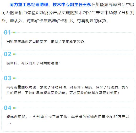 同力重工TL105E純電動(dòng)非公路寬體自卸車榮獲工程機(jī)械行業(yè)“新能源金獎(jiǎng)”產(chǎn)品稱號,這是用戶與行業(yè)對同力重工的高度肯定,也是對同力重工的強(qiáng)大激勵(lì)。在頒獎(jiǎng)典禮上,同力重工副總經(jīng)理?xiàng)罱ㄒl(fā)表了熱情洋溢的獲獎(jiǎng)感言,他表示:同力重工將珍惜這份榮譽(yù)持續(xù)加大研發(fā)投入,為廣大用戶提供技術(shù)成熟、性能先進(jìn)、性價(jià)比更高的產(chǎn)品與服務(wù),持續(xù)引領(lǐng)行業(yè)技術(shù)創(chuàng)新,為碳達(dá)峰、碳中和目標(biāo)實(shí)現(xiàn)貢獻(xiàn)同力智慧與方案,體現(xiàn)同力重工的責(zé)任與擔(dān)當(dāng),與行業(yè)同仁一起探尋工程機(jī)械電動(dòng)化新的未來!
