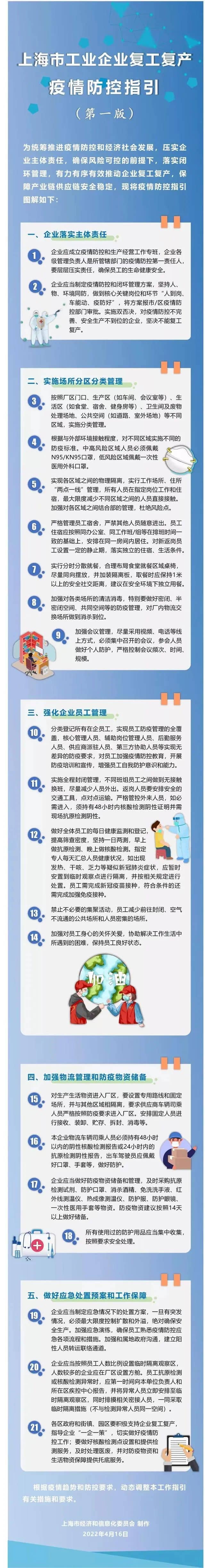 同日,上海市經(jīng)信委發(fā)布《上海市工業(yè)企業(yè)復(fù)工復(fù)產(chǎn)疫情防控指引(第一版)》明確,各區(qū)政府和街鎮(zhèn)、園區(qū)要積極支持企業(yè)復(fù)工復(fù)產(chǎn),指導(dǎo)企業(yè)“一企一策” ,切實(shí)做好疫情防控工作。同時(shí),上海第一批重點(diǎn)復(fù)工企業(yè)“白名單”出爐,共計(jì)666家企業(yè)上榜。