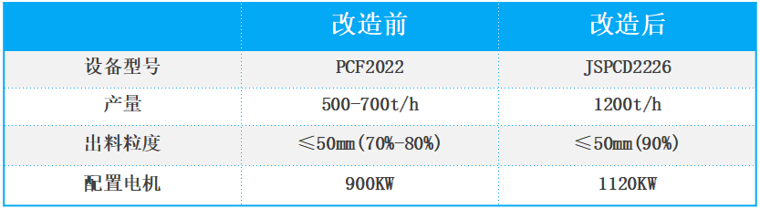 產量提高:通過技改后,可實現(xiàn)提產50%,徹底滿足水泥廠技改工藝所帶來的石灰石需求提升。
