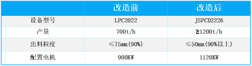 1、通過原破碎機改造,實現(xiàn)了提產、降耗,同時破碎后石料粒型實現(xiàn)了可控可調,既能滿足水泥廠生料的需要,同時也可以滿足混凝土對骨料性能的需求。