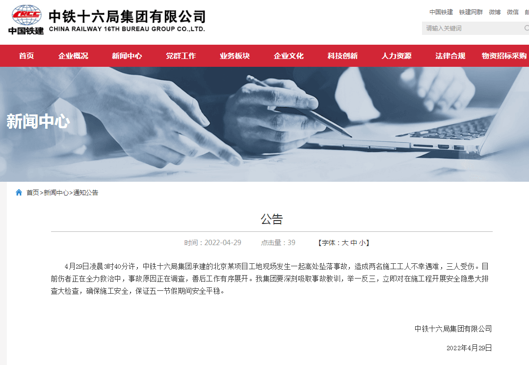 目前傷者正在全力救治中,事故原因正在調(diào)查,善后工作有序展開(kāi)。中鐵十六局集團(tuán)要深刻吸取事故教訓(xùn),舉一反三,立即對(duì)在施工程開(kāi)展安全隱患大排查大檢查,確保施工安全,保證五一節(jié)假期間安全平穩(wěn)。