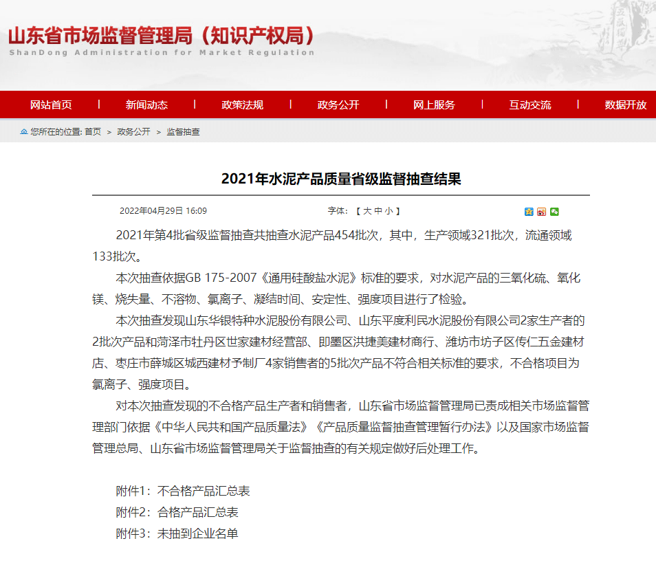2021年水泥產(chǎn)品質(zhì)量省級監(jiān)督抽查不合格情況匯總表