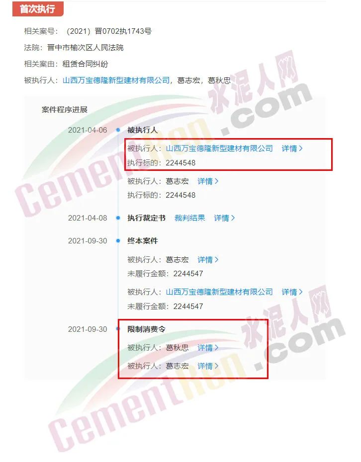 天眼查數(shù)據(jù)顯示:山西萬寶德隆新型建材有限公司,成立于2013-12-23,注冊資本為5000萬人民幣,法定代表人為葛秋忠,經(jīng)營狀態(tài)為存續(xù),工商注冊號(hào)為140000210054331,注冊地址為晉中市榆次區(qū)修文鎮(zhèn)郭村南,經(jīng)營范圍包括粉煤制品的生產(chǎn)、銷售及粉煤灰的銷售;石子、脫硫石膏、化工產(chǎn)品(除危險(xiǎn)品)、建材(除木材)、食品儀表、電力器材、辦公用品、五金工具、裝潢材料、水暖器材的銷售。(依法須經(jīng)批準(zhǔn)的項(xiàng)目,經(jīng)相關(guān)部門批準(zhǔn)后方可開展經(jīng)營活動(dòng))。