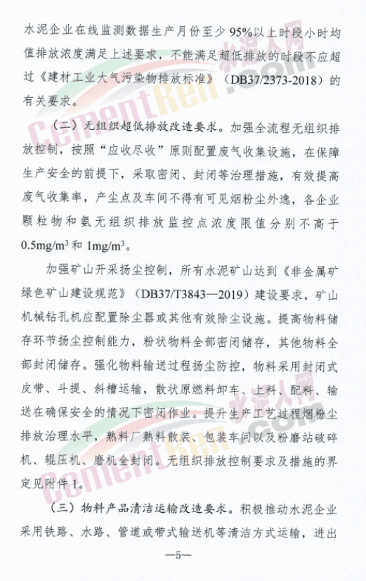 山東全省新建(含搬遷)水泥企業(yè)投產(chǎn)時(shí)要全面實(shí)現(xiàn)超低排放。列入山東省2023年年底前關(guān)停退出計(jì)劃的水泥企業(yè)或主要生產(chǎn)設(shè)施,不再要求實(shí)施超低排放改造,但應(yīng)滿足污染物排放標(biāo)準(zhǔn)限值要求,并按時(shí)完成產(chǎn)能關(guān)停退出。