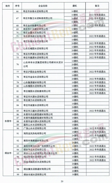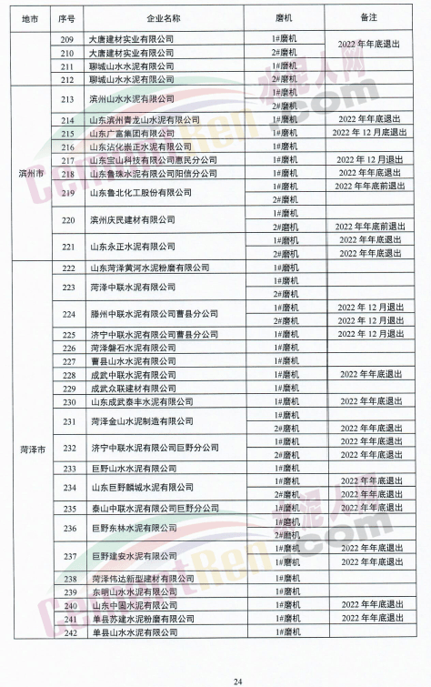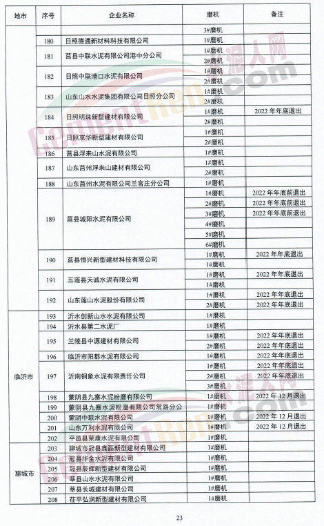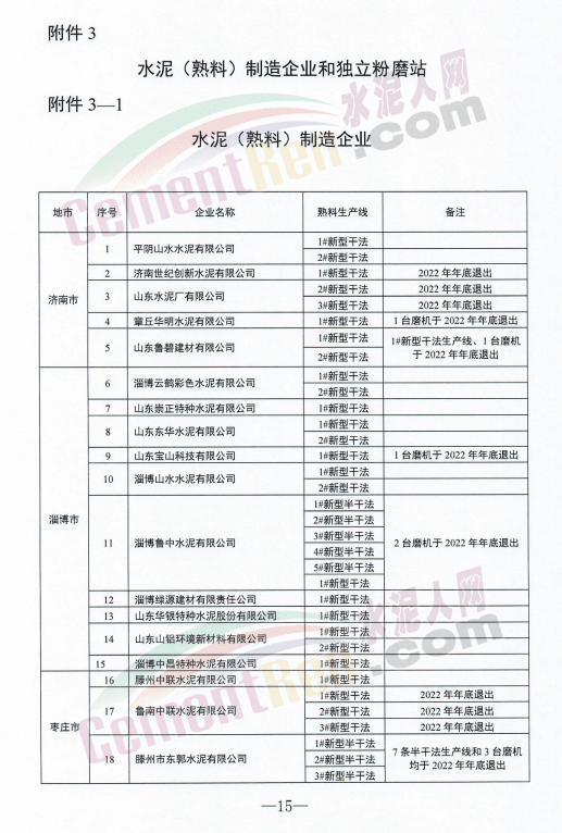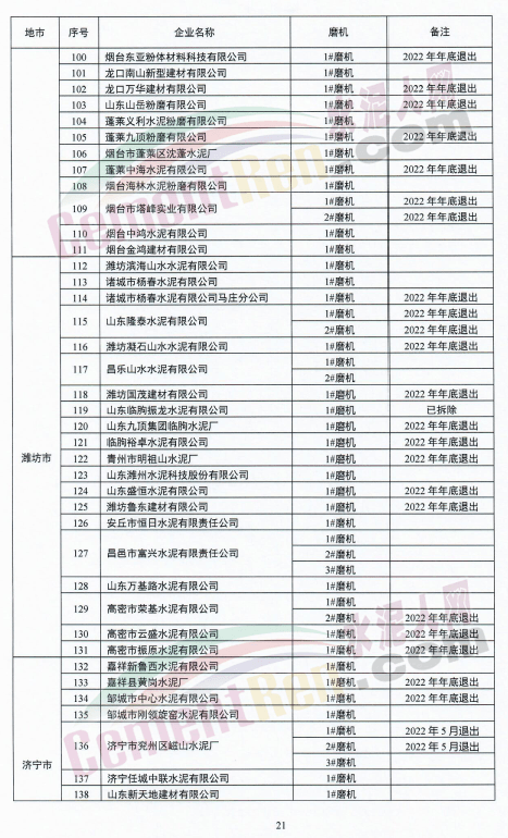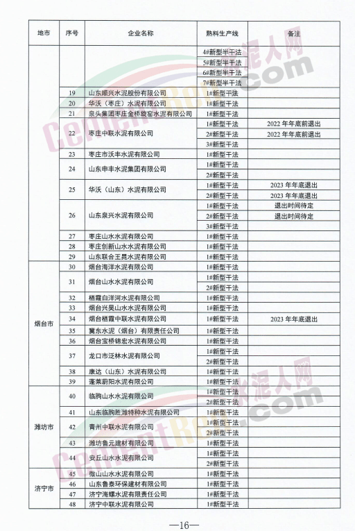 山東泉興水泥有限公司兩條新型干法水泥熟料生產(chǎn)線退出時(shí)間標(biāo)注為“待定”。
