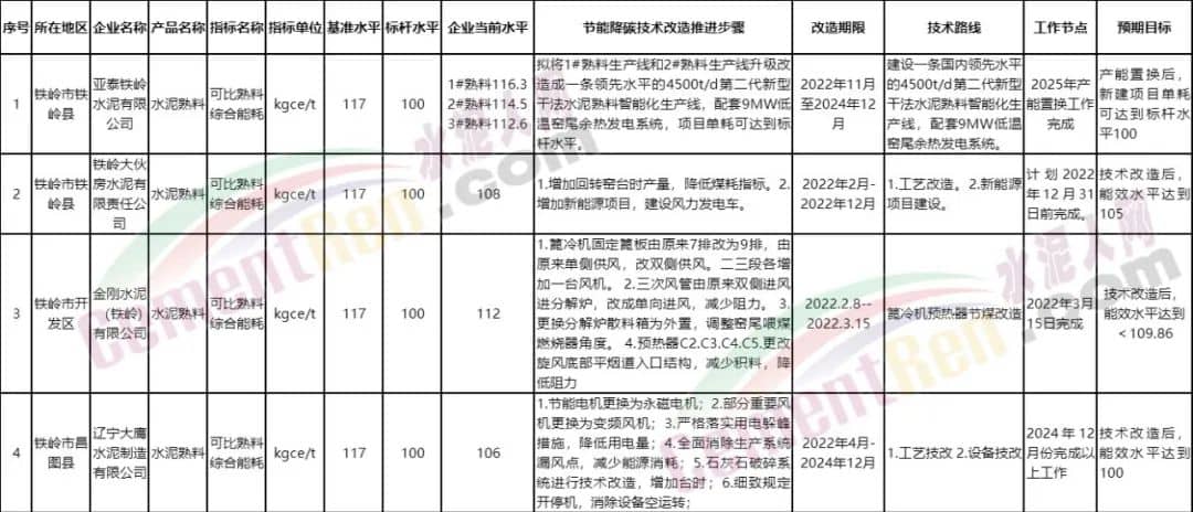 鐵嶺市水泥行業(yè)重點企業(yè)技術(shù)改造