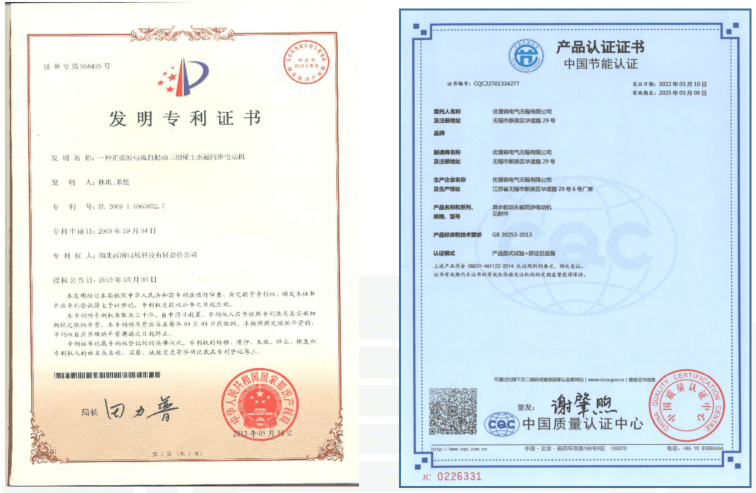 優(yōu)普森是在國內(nèi)永磁電機領(lǐng)域開始較早、產(chǎn)品系列齊全、電機效率更高的企業(yè),其低壓永磁同步電機全系列獲得國家一級能效標(biāo)準(zhǔn)認(rèn)證,是國家電機等效新標(biāo)準(zhǔn)實施以來,業(yè)內(nèi)第一批獲此殊榮的單位。