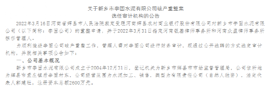 9、新鄉(xiāng)李固水泥有限公司 破產(chǎn)重整