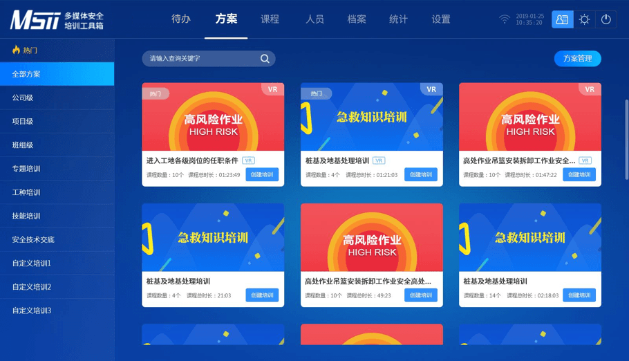 2、將零散的培訓(xùn)建檔標(biāo)準(zhǔn)化、信息化,引入數(shù)字化、模塊化教學(xué)理念,無需繁瑣的準(zhǔn)備工作,培訓(xùn)負(fù)責(zé)人根據(jù)不同崗位、工種、職務(wù)為學(xué)員制定培訓(xùn)計(jì)劃(包括內(nèi)容、課程、學(xué)時(shí)等要素),開機(jī)即可進(jìn)行安全培訓(xùn);