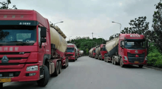 資料圖:水泥車(chē)排隊(duì)