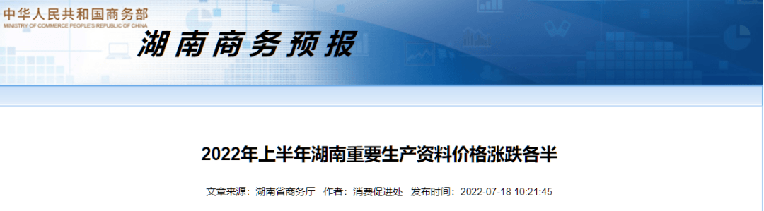 據(jù)湖南省商務(wù)廳重要生產(chǎn)資料市場監(jiān)測系統(tǒng)顯示,2022年上半年全省重要生產(chǎn)資料價格環(huán)比漲跌各半。六大類商品中煤炭、成品油、化肥市場價格上漲;鋼材、有色金屬、水泥市場價格下跌。具體監(jiān)測情況分析如下: