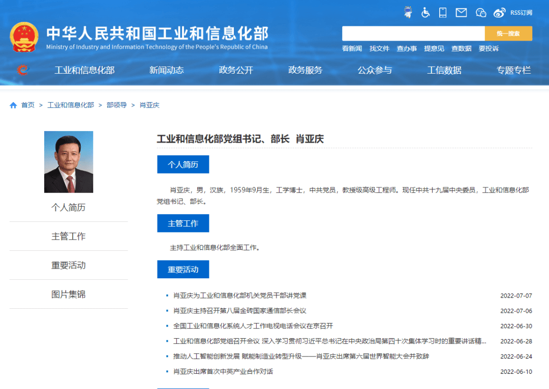 2020年7月31日,中共中央決定:肖亞慶同志任工業(yè)和信息化部黨組書記,苗圩同志不再擔(dān)任工業(yè)和信息化部黨組書記。