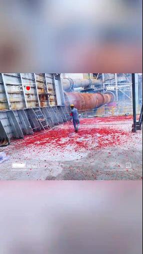 廣東某水泥企業(yè)點火開窯:視頻中不僅放了鞭炮,還有兩名員工在殺公雞。據(jù)說這雞不能是母雞,母雞喻意“下蛋”,而水泥窯“下蛋”成了糟糕的喻意。