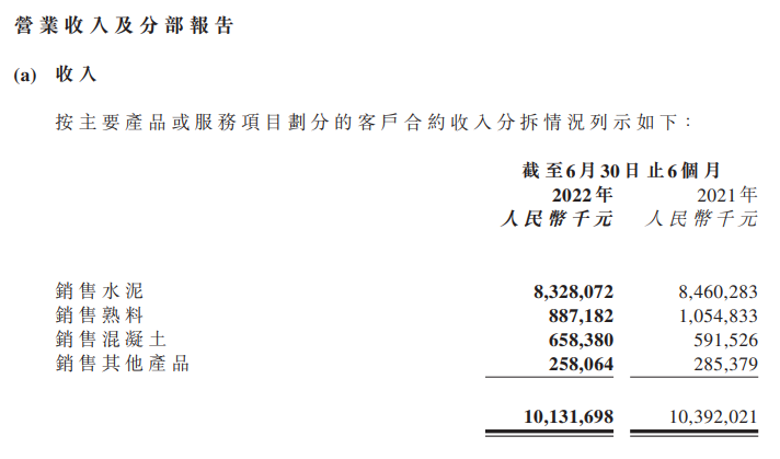2022年上半年,山水水泥持續(xù)致力于細(xì)化內(nèi)部基礎(chǔ)管理,以提升現(xiàn)有生產(chǎn)運(yùn)營(yíng)質(zhì)量和可持續(xù)盈利能力。截至2022年6月30日,水泥產(chǎn)能9,679萬(wàn)噸,熟料產(chǎn)能5,047萬(wàn)噸,商品混凝土產(chǎn)能1,710萬(wàn)立方米。報(bào)告期內(nèi),本集團(tuán)銷(xiāo)售水泥、熟料合計(jì)23,848,471噸,同比減少18.2%;銷(xiāo)售商品混凝土1,512,000立方米,同比增加4.0%;營(yíng)業(yè)收入人民幣10,131,698,000元,同比減少2.5%;本期盈利人民幣468,716,000元,同比減少62.5%。