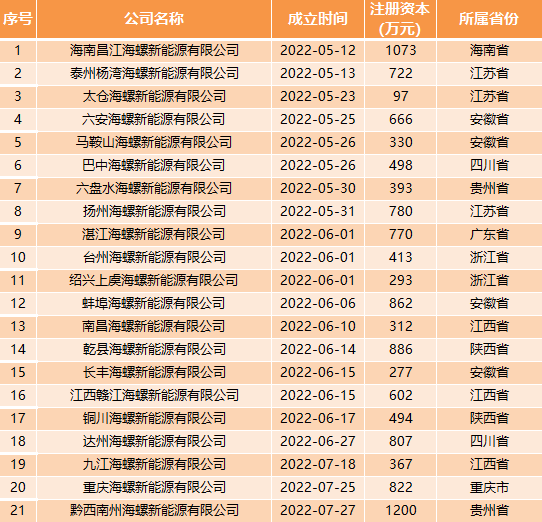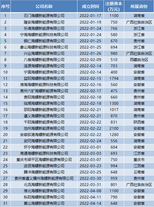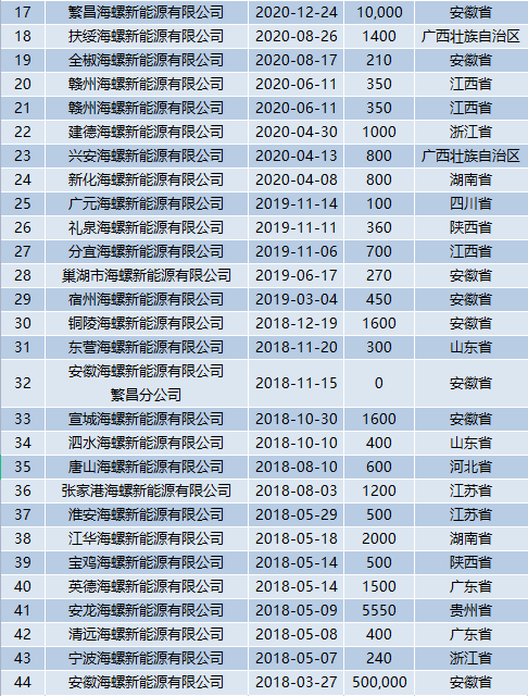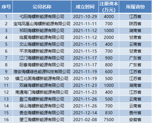 2018年-2021年,海螺新能源獨立出資設(shè)立了44家新能源公司。海螺新能源主營業(yè)務(wù)包括光伏發(fā)電、風(fēng)力發(fā)電、儲能系統(tǒng)領(lǐng)域內(nèi)的技術(shù)開發(fā)、技術(shù)服務(wù),電力項目的建設(shè)、運營和管理等。