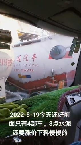 8月19日早晨,在河南同力排隊(duì)的司機(jī)表示:“前面只有4部車(chē),8點(diǎn)水泥還要漲價(jià),下料慢慢的”。