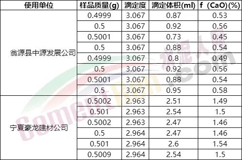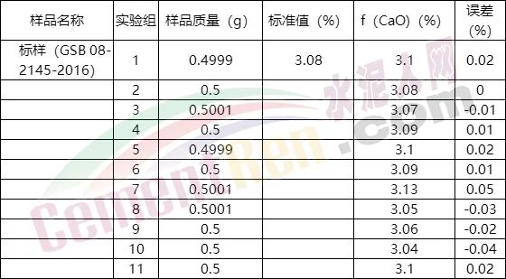 標(biāo)樣fCaO數(shù)據(jù)對(duì)比表