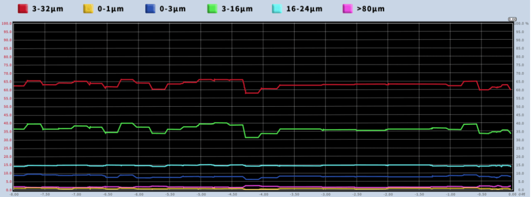 不同粒徑段含量,水泥在線檢測(cè)數(shù)據(jù)趨勢(shì)圖