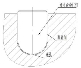4、掉釘問題:柱釘與套體上孔的配合為過盈裝配加膠粘合,圖例: