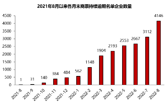 據(jù)上海票交所公開數(shù)據(jù), 2022年3月1日至2022年8月31日出現(xiàn)3次以上付款逾期,且截至2022年8月31日有逾期余額或2022年8月當(dāng)月出現(xiàn)付款逾期的承兌人數(shù)量為4146家,較上月末增加1034家,創(chuàng)歷史新高。其中房地產(chǎn)相關(guān)企業(yè)依然是商票逾期的重災(zāi)區(qū),4146家逾期企業(yè)中,房地產(chǎn)、建筑、租賃和商務(wù)服務(wù)企業(yè)達(dá)到3265家,占比79%;首次逾期的1247家企業(yè)中,房地產(chǎn)、建筑企業(yè)、租賃和商務(wù)服務(wù)企業(yè)達(dá)到997家,占比80%。廣州富力地產(chǎn)股份有限公司首次出現(xiàn)在逾期名單之上,8月末逾期余額3575萬元,房地產(chǎn)企業(yè)風(fēng)險(xiǎn)仍在持續(xù)暴露。