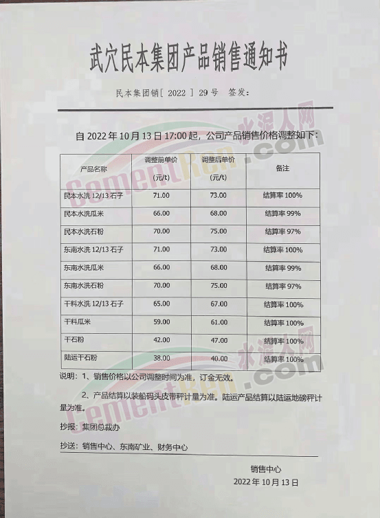 同期,武穴民本集團通知自2022年10月13日17∶00起,調整旗下產品報價,調整后價格較之前高出2-5元/噸。