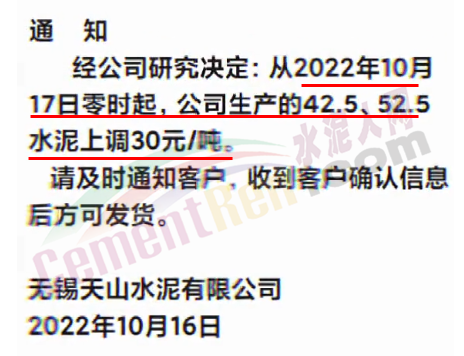揚(yáng)子水泥集團(tuán)通知,經(jīng)事業(yè)部研究,從10月19日零時起,42.5水泥江蘇上調(diào)30元/噸,浙江市場上調(diào)30元/噸,上海市場上調(diào)30元/噸。