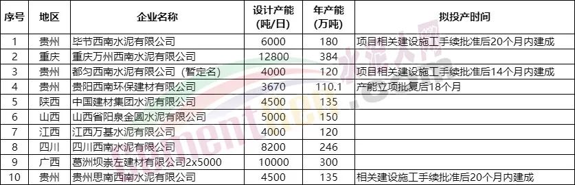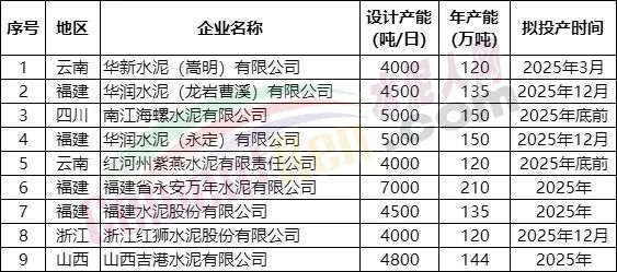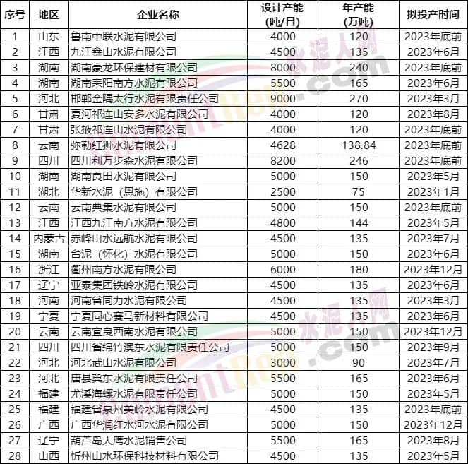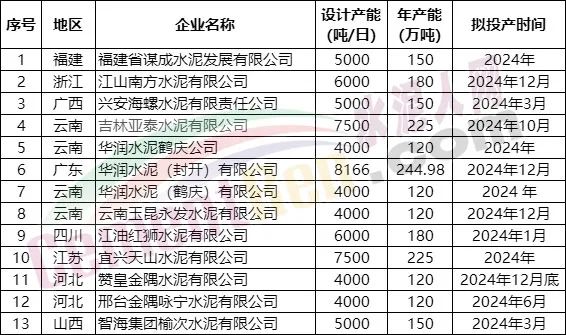 據(jù)水泥人網(wǎng)此前報道,今年內(nèi)已點火投產(chǎn)的生產(chǎn)線分別為: