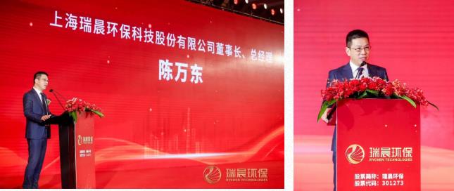 上海市嘉定區(qū)副區(qū)長(zhǎng)李峰先生、東方證券股份有限公司黨委副書記、總裁魯偉銘先生分別致辭,他們對(duì)瑞晨環(huán)保上市表示衷心的祝賀,并對(duì)瑞晨環(huán)保的未來發(fā)展提出了新的期待。