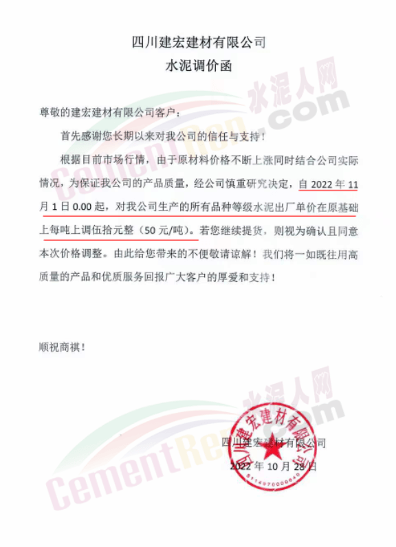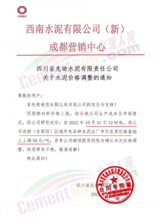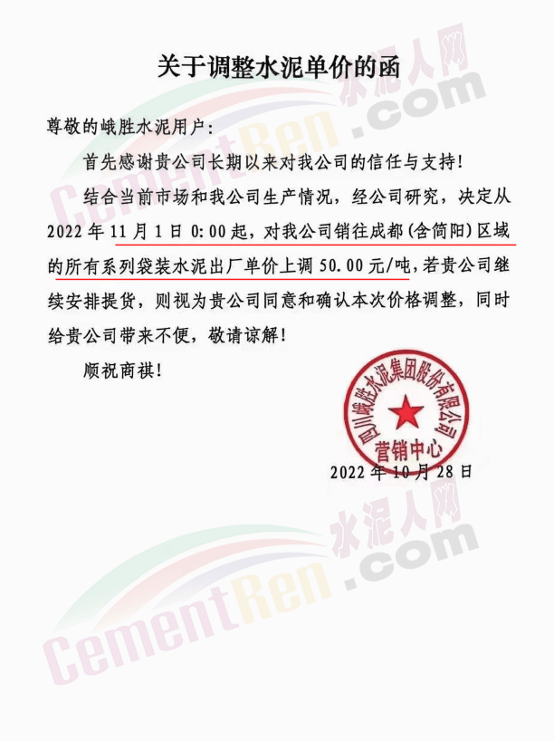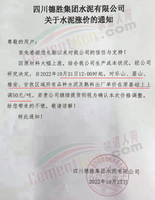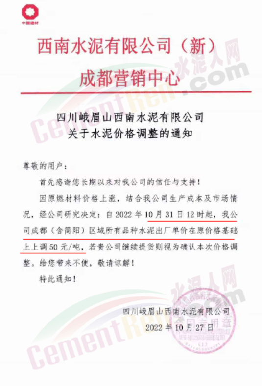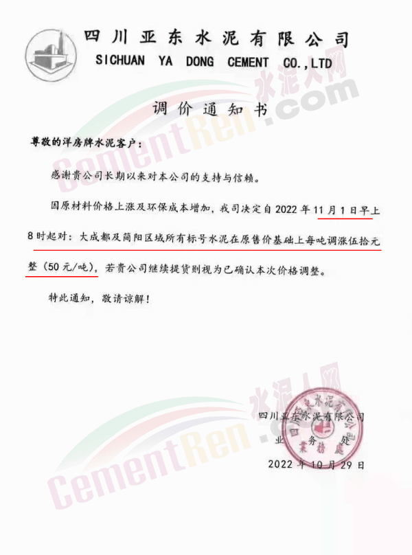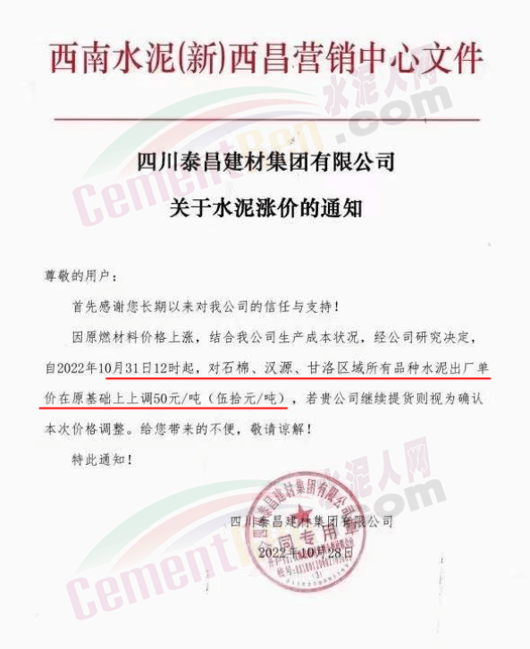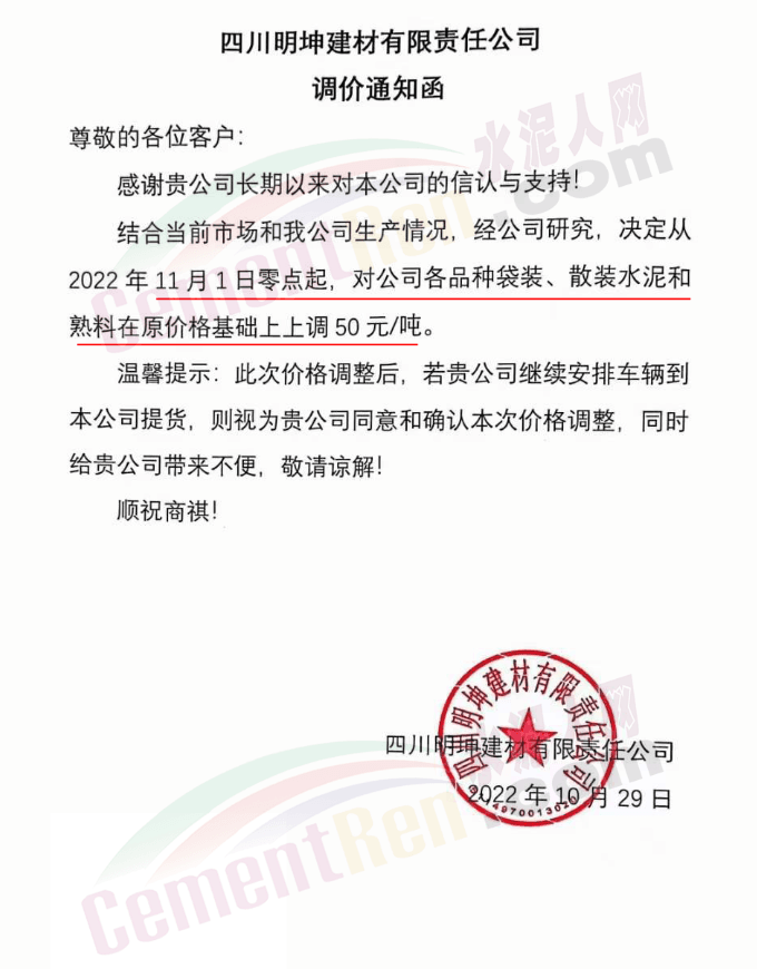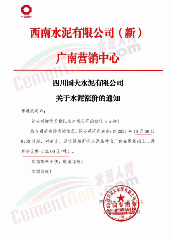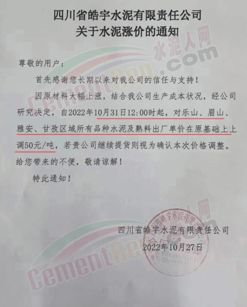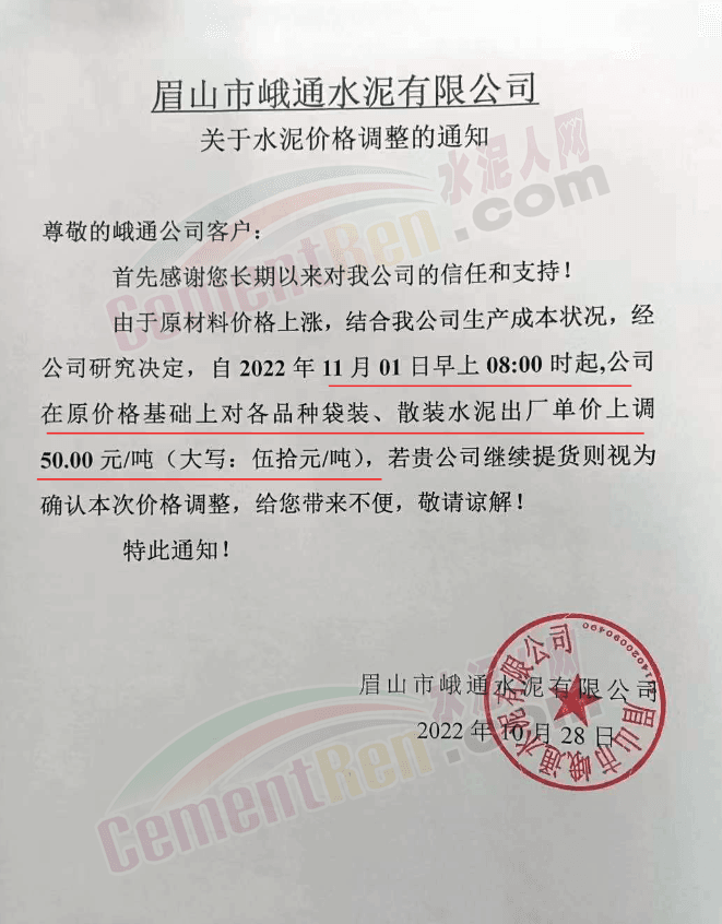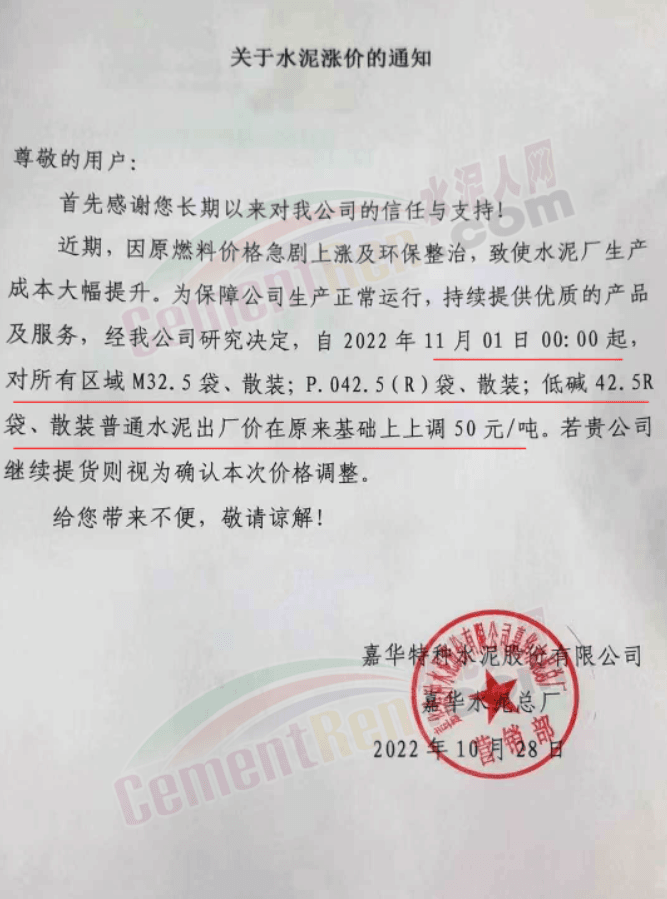 據(jù)了解,本輪調價是從10月30日起,包括粉磨站在內的多家水泥企業(yè)通知上調水泥價格50元/噸,熟料價格同步上調30元/噸。
