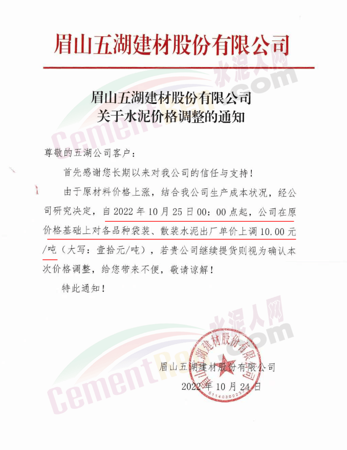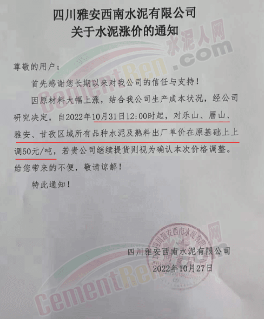 據(jù)了解,早在10月25日,包括粉磨站在內的多家水泥企業(yè)曾經(jīng)通知上調水泥價格10元/噸。