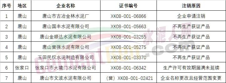 浙江省51個(gè)編號(hào)水泥生產(chǎn)許可證處于注銷狀態(tài);