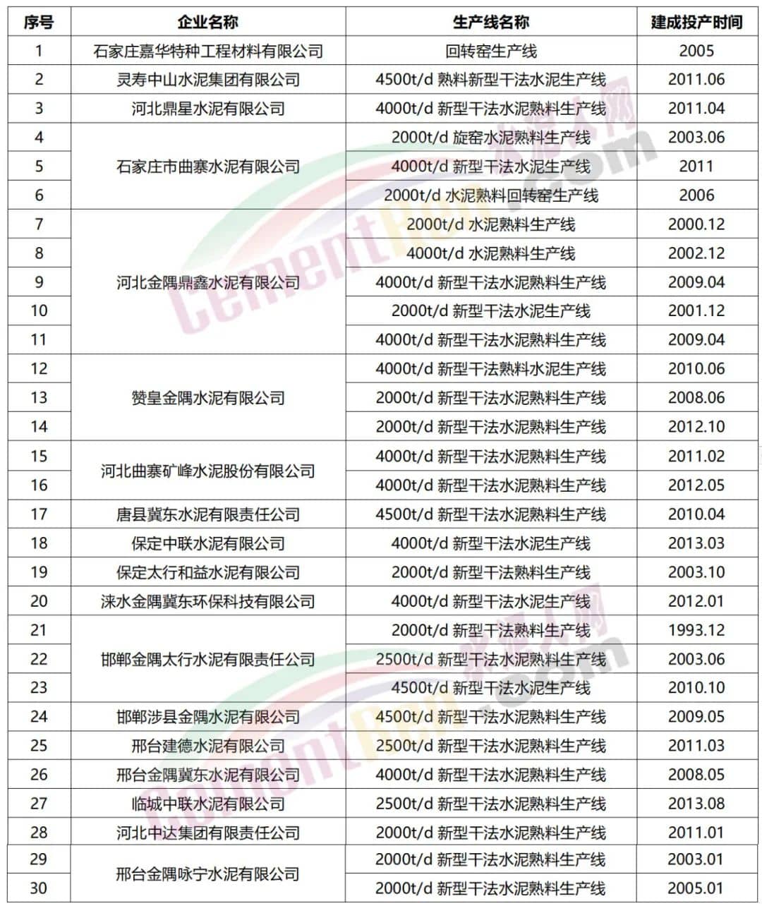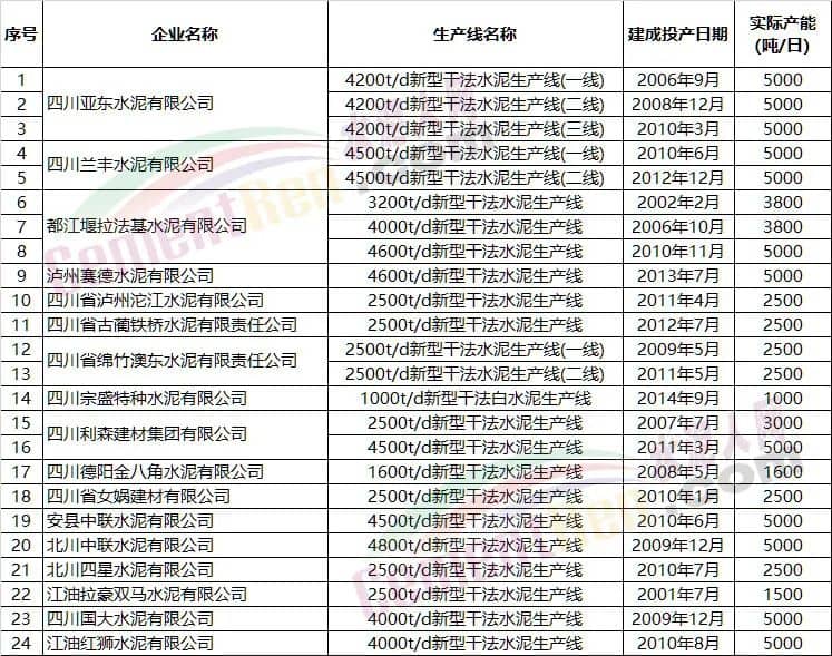 據(jù)水泥人網(wǎng)不完全統(tǒng)計(jì),上述區(qū)域涉及四川、安徽、河北、黑龍江區(qū)域40多家水泥企業(yè)64條熟料生產(chǎn)線。