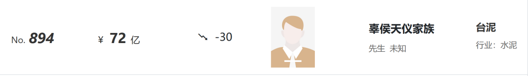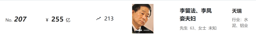 來自浙江的農(nóng)夫山泉創(chuàng)始人鐘睒睒,再次登上2022胡潤百富榜榜首,財富值達(dá)4550億元,創(chuàng)20多年來中國首富財富值最高紀(jì)錄。“水泥富豪天瑞集團(tuán)的李留法、李鳳孌夫婦,以255億元財富位列207位;紅獅控股集團(tuán)的章小華,以110億元的財富排名564位;臺泥的辜侯天儀家族以72億元財富位列894位。