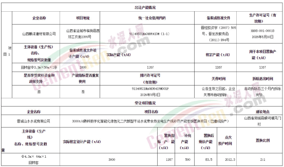 2022年8月15日山西工信廳發(fā)布的《鵬澤建材有限公司產(chǎn)能出讓公告》顯示,山西鵬澤建材有限公司出讓1167t/d用于晉城山水水泥有限公司補(bǔ)充產(chǎn)能。