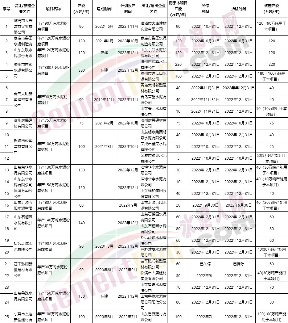 據(jù)水泥人網(wǎng)了解,類似的“先上車后補(bǔ)票”式補(bǔ)齊產(chǎn)能,近年來(lái)并不少見(jiàn)。而且不僅見(jiàn)于熟料生產(chǎn)線。山東省7月份以來(lái)發(fā)布的粉磨站補(bǔ)充產(chǎn)能公告包含15個(gè)水泥粉磨項(xiàng)目。置換比例均為1:1,核定產(chǎn)能合計(jì)1905萬(wàn)噸/年。退出項(xiàng)目共25個(gè),合計(jì)退出1645萬(wàn)噸/年。
