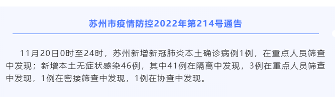 江蘇蘇州市通報(bào):11月21-22日兩日內(nèi),江蘇蘇州市共新增新冠肺炎本土確診病例2例,新增本土無癥狀感染100例;其中24人居住或去過工地,涉及金地翡翠星辰花園項(xiàng)目工地、吳江區(qū)龐南路科技園工地,吳中區(qū)光福鎮(zhèn)福利路橫涇建設(shè)工地。