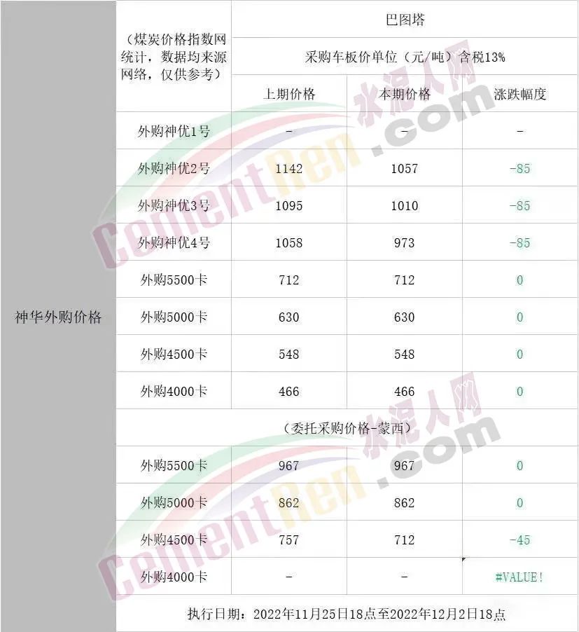 11月25日榆林礦區(qū)延續(xù)弱勢下行行情,區(qū)域內(nèi)煤礦還在繼續(xù)大幅下調(diào)價格。疫情影響運輸,疊加港口、坑口、大型煤企價格持續(xù)下行,終端普遍放緩采購,榆林市場銷售冷清,煤礦庫存回升,價格承壓大幅下行。