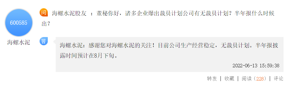 有水泥企業(yè)員工表示,原本7000-8000元的月薪如今到手只有3000-4000元,少了近一半。這是意味著各大水泥廠以另一種方式實(shí)行了“軟裁員”,實(shí)際員工數(shù)量沒有較少,而實(shí)際發(fā)放工資大量減少,以降低企業(yè)運(yùn)營(yíng)成本。對(duì)于網(wǎng)傳“海螺裁員”的消息,上市公司已辟謠并稱“公司生產(chǎn)穩(wěn)定,無裁員計(jì)劃”。