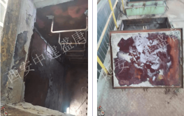 旗下另外一家企業(yè)原先水泥廠窯尾收塵器內壁存在同樣嚴重腐蝕問題。2021年2月,采用西安中建盛唐石墨烯防腐涂料進行防腐施工項目,施工面積總達3500平方米,防腐層厚度0.3-0.5mm,設備運行至今,整體效果良好,達到預期防腐效果,符合合同各項指標。