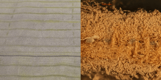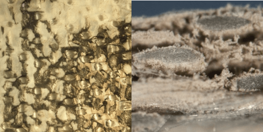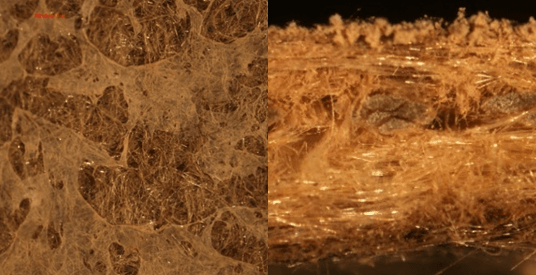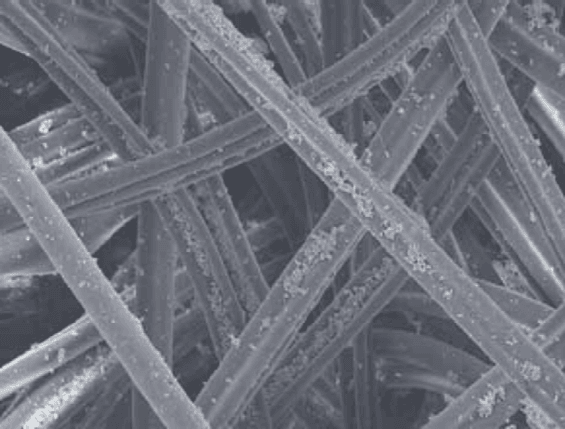 圖3 :不規(guī)則的多葉形P84®纖維與圓形纖維捕捉粉塵效果比較