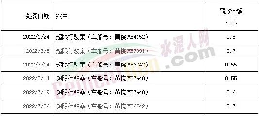 天長市千秋水泥有限責(zé)任公司因6起違法在公路上超限行駛案2022年內(nèi)被天長市交通運(yùn)輸局處罰3.6萬元。處罰日期分別1月、3月和7月。